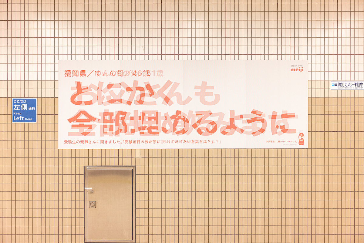 この広告は東京大学前の駅で掲出され、見る角度によって異なるメッセージが表示されるというユニークな仕掛けが特徴です。行きと帰りで受験生を応援するメッセージが変わることで、広告がSNSで大きな話題となりました。広告自体が「親から受験生へのメッセージ」を表現しており、角度による変化が広告効果を高めた事例です。
