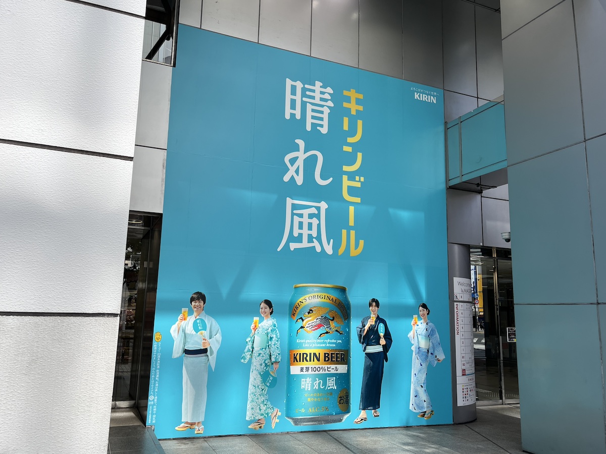 キリンビール株式会社は、2024年7月、渋谷スクランブル交差点に位置するMAGNET by SHIBUYA109のビッグボードに「キリンビール 晴れ風」の広告を掲出しました。このビルボードは縦6メートルの巨大なシート広告で、交差点を行き交う人々の目を引く存在となっています。
