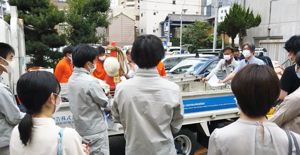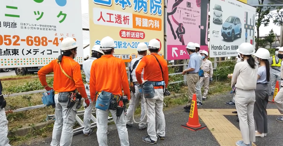 講習の一環として、実際の看板掲出場所に足を運び、現場ごとのリスクポイントをその場で確認するフィールドワークも行います。