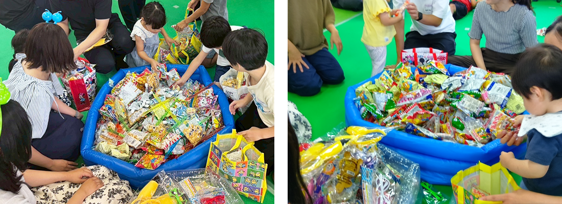 次のプログラムは、子どもたちに大人気の「お菓子詰め放題」を開催!