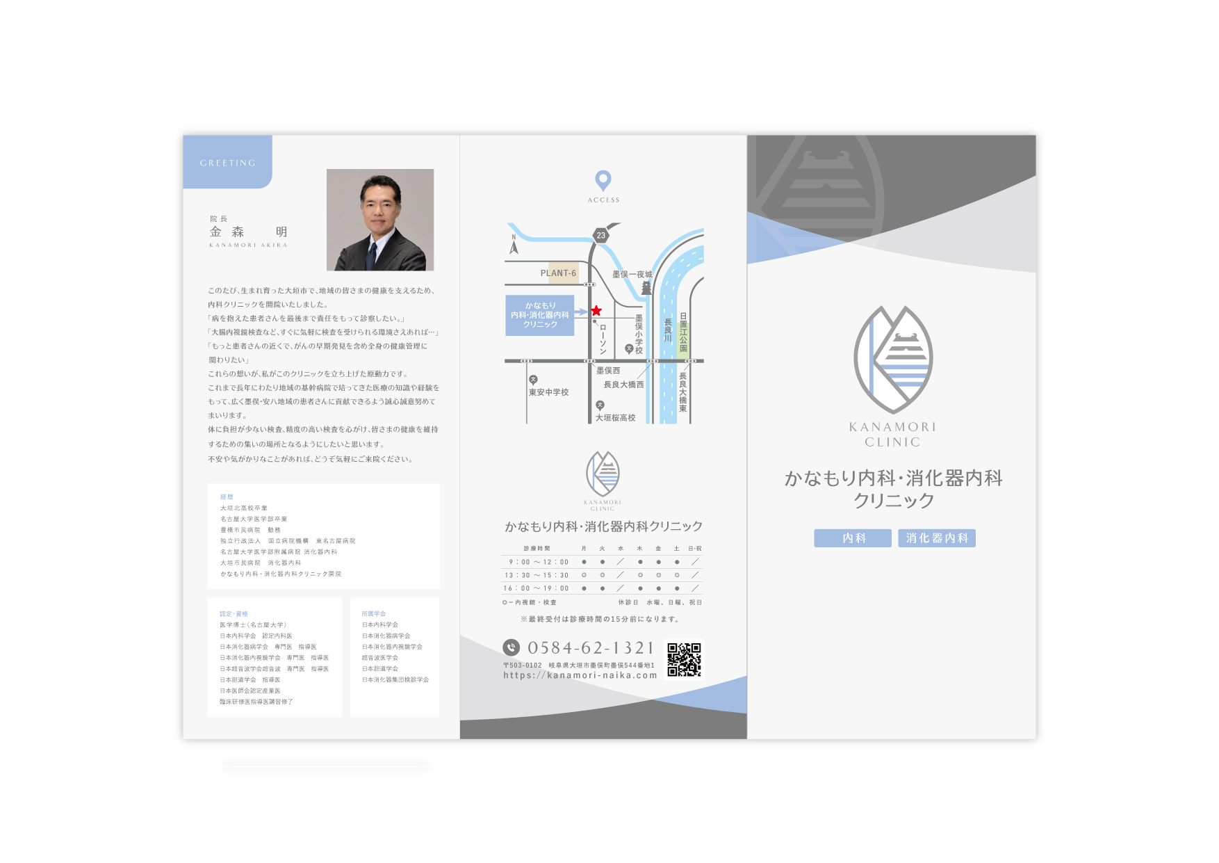 岐阜県大垣市に新規ご開院されました「かなもり内科・消化器内科クリニック」様のブランディングを担当させていただきました。